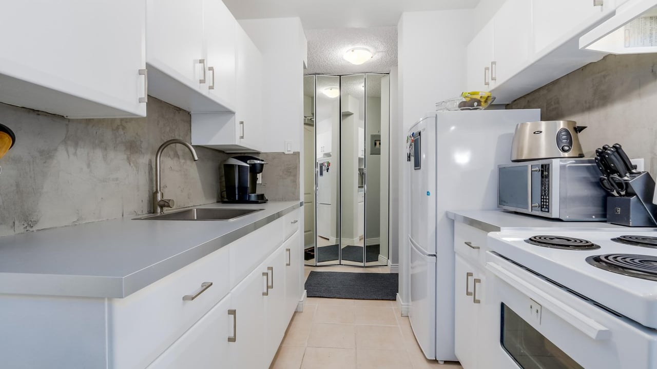 Sought after one bedroom floor plan in Woodcroft's popular Lillooet building. East facing for morning sun and views to Woodcroft gardens. Extensively updated throughout including kitchen and bath. Great floor plan with balcony in front of living room for maximum windows and ambient light. Extra deep in-suite storage room plus additional locker down. Great first time residential buyer or investor suite. Well run Strata with major infrastructure upgrades including hot and cold water plumbing replacement, roof replacement, elevator rebuilding and common area renovations. Over 1.3M in contingency funds for future projects. 24/7 manned security and on-site property management for peace of mind.
