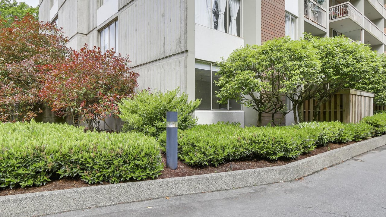 Not your regular ground floor suite! Spacious corner two bedroom suite in Woodcroft's sought after Seymour building. South east exposure for loads of natural lighting. Dining room and second bedroom have south facing windows for extra light that only a corner suite can offer. Near total kitchen and bath renovations, near new carpeting and ready for fast possession. Great choice for a first time buyer or investor owner. Oversized east facing patio with privacy fencing. In suite storage room plus locker down. Building has completed major upgrades including replacement of hot and cold water plumbing, elevator rebuilding, new roof, exterior concrete spalling repairs and common area renovations. Healthy contingency fund. 24/7 manned security for peace of mind. Resident building managers.