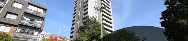 Excellent City Skyline and Water views from this south facing two bedroom in the sought after Ocean Vista building. Loads of sun and natural lighting even on those gray Vancouver days! Converted to a one bedroom and den but an easy return to a full two bedroom. Partial updates but ready for your renovation plan and priced accordingly for Lower Lonsdale concrete. Two adjacent parking stalls which is rare for buildings of this age and great for the two car family. Super convenient location to shops, restaurants and Transit. Easy walk to Seabus for downtown commuters. Walk Score ranking of 96! Rentals allowed for maximum flexibility of ownership. If you have always wanted to live in the dynamic Lower Lonsdale neighbourhood this is your chance.
