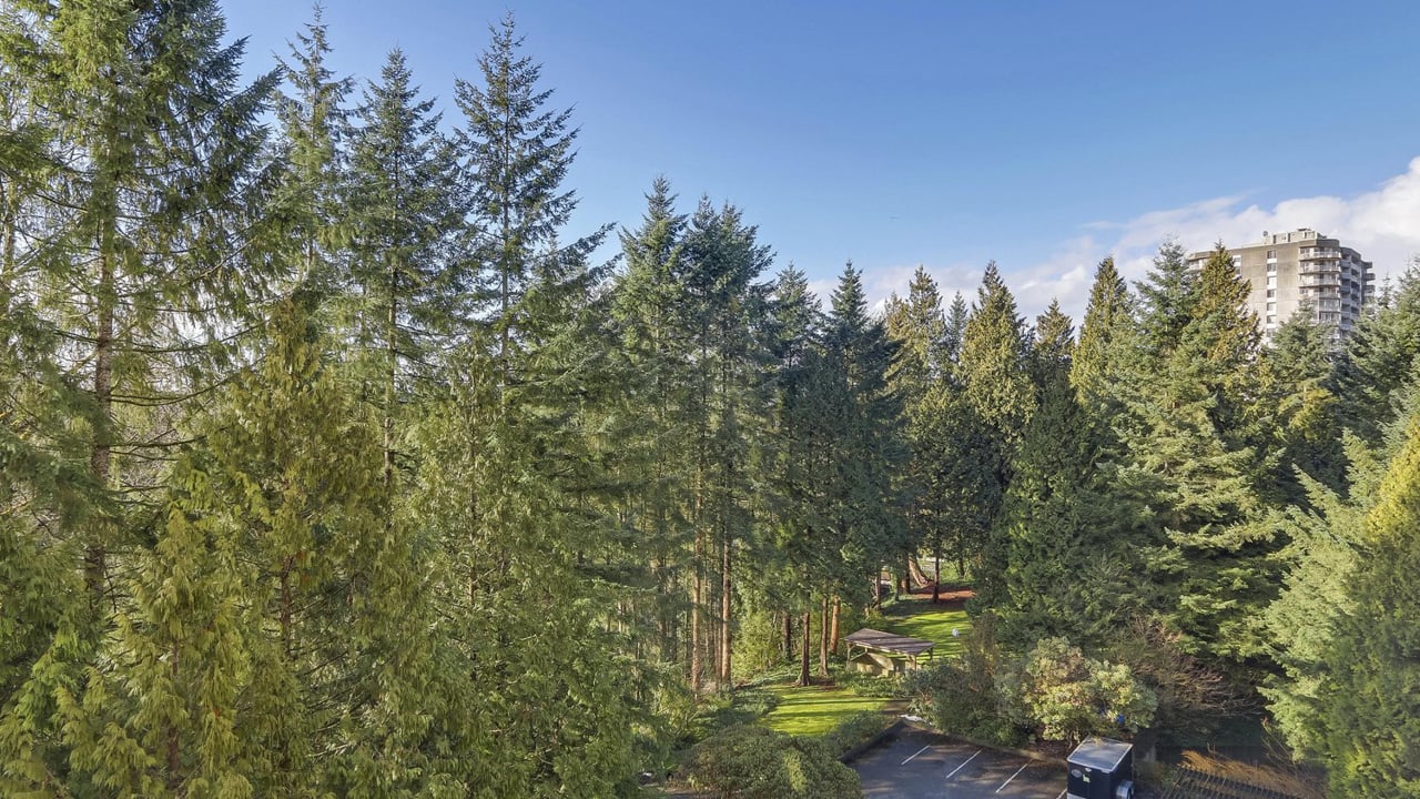 Rarely offered south facing "02" floor plan in Woodcroft's sought after Whytecliff building. This plan features the balcony in front of the living room with floor to ceiling windows on the south wall for maximum brightness and views. Convenient in-suite storage room for enhanced access and security. Private treed and sunny south views to the Capilano River. Partial updates and maintained by a caring resident owner. Building has many infrastructure upgrades including recent replacement of hot and cold water plumbing, exterior concrete spalling repairs including balcony railing replacement, new roof and elevator rebuilding. Lobby renovation underway. 24/7 manned security for peace of mind. On site property management and resident building managers to enhance the lifestyle.
