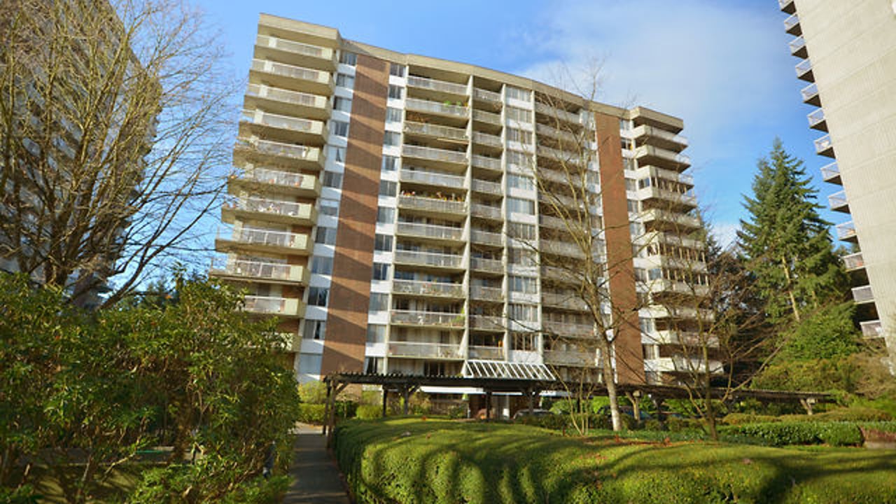 Rarely offered west facing one bedroom in Woodcroft's sought after Hollyburn building. Partially renovated and well maintained by meticulous resident owner. Spacious floor plan with generous room sizes. Kitchen west wall can be opened up for more ambient lighting and installation of Kitchen Island. Insuite storage room plus locker down. Private outlook to trees and afternoon sun. Fast possession is possible. Good contingency fund. 24/7 manned security, live in caretaker and onsite property management. Easy walk to Park Royal shopping along the Capilano River.