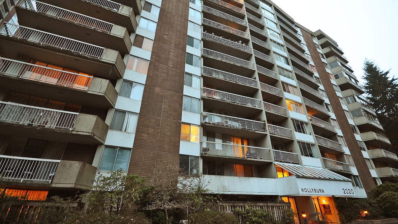 Prime S/W corner two bedroom in Woodcroft's sought after Hollyburn building. Afternoon sun and private treed outlook.Spacious plan with 1.5 baths ready for your renovation but priced accordingly. Spacious floor plan with "L" shaped living and dining room for max flexibility with your "house sized" furnishings. Bylaws allow 4 residents. Building is well maintained and shares recreation facilities with the Capilano building but is a separate Strata Corp. Hollyburn has very few rentals and long term stable ownership - very few people move from this building.