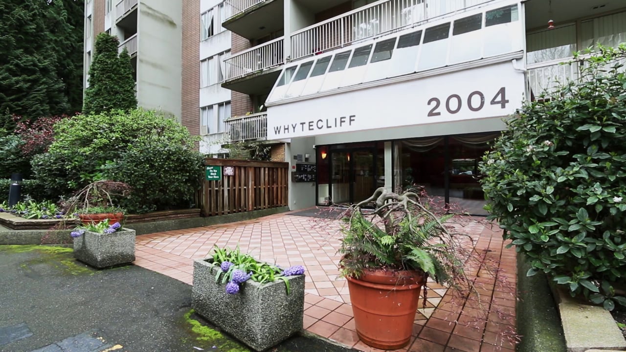 Rare "02" floor plan is Woodcroft's popular Whytecliff building. This suite offers insuite storage and balcony in front of living room with full height windows to maximize ambient light and view. Private outlook but with loads of sun. New carpets and paint, flooring, baseboards, light fixtures, new electric range and hood fan. Partial bath updates. This suite shows very well! These floor plans are often requested and seldom available. Building has over 1 Million in contingency funds and has recently completed hot and cold water plumbing replacement.