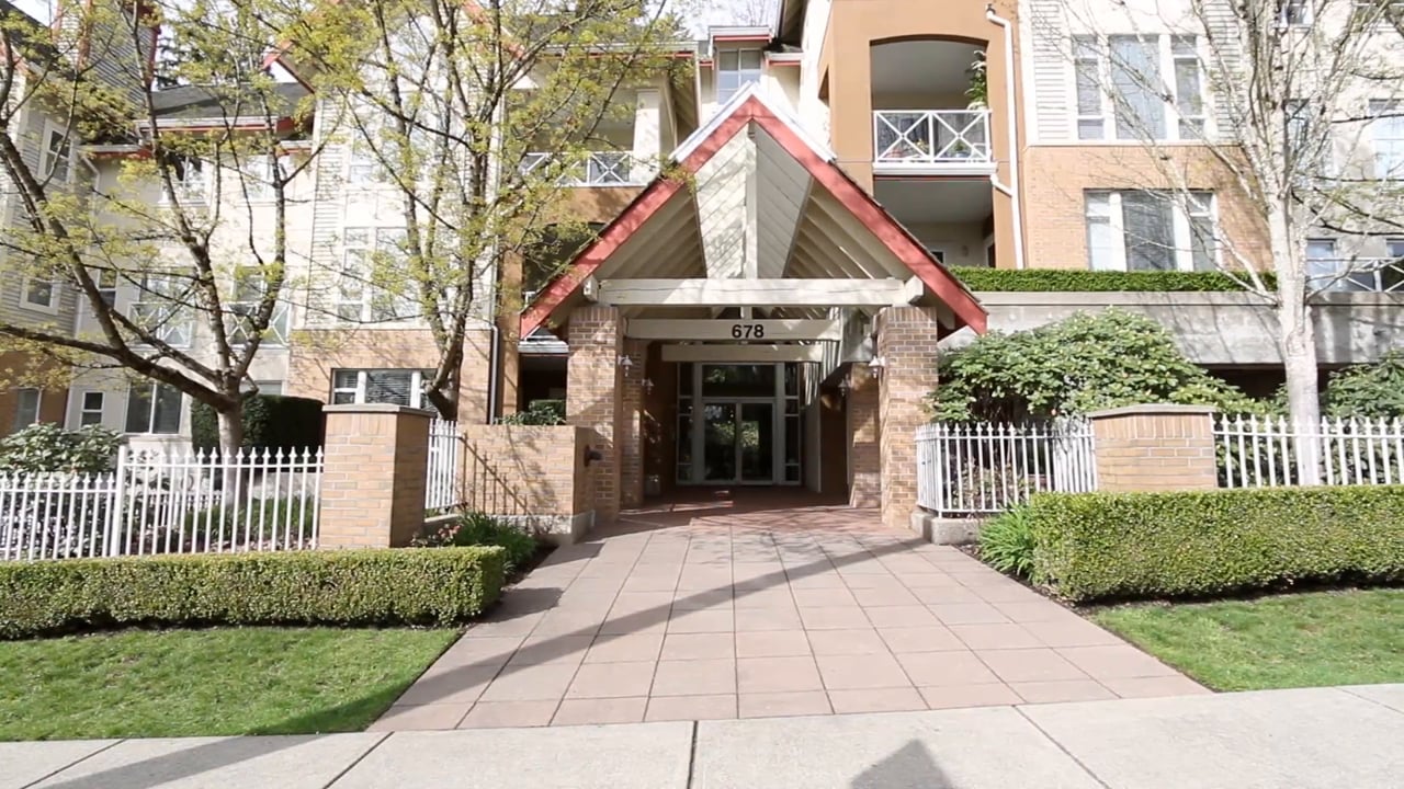 Seldom offered south facing two bedroom and two bath suite in Delbrook's sought after Queensbrook building. Top floor with vaulted ceilings and ample windows to enhance the natural light and views. Extremely well cared for and shows well. Pre-finished hardwood flooring, granite counters compliment the generous room sizes and functional floor plan. In-suite storage and full size washer/dryer to ease the transition from the family home. You'll enjoy the lounge with full kitchen, the workshop and central courtyard. This location is ideally located just steps from Transit, Delbrook Rec Centre and an easy walk to shopping, Griffin Rec Centre and Delbrook Park. Bring your two small dogs or two cats, building is pet friendly.
