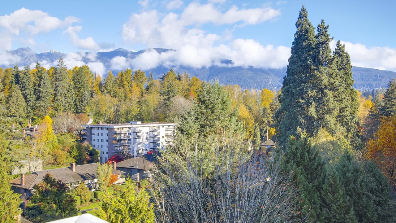 Rarely offered corner one bedroom floor plan in Woodcroft's sought after Lillooet building. In the entire Woodcroft complex there are only two corner one bedroom plans and this is the only one with a side window to enhance the views and natural lighting. Generous room sizes with over 700 square feet of living space. Well maintained by resident owner but ready for renovation and priced accordingly. Angled views to the Woodcroft gardens and Grouse Mountain. Perfect for a first time residential buyer or investor. Well run strata with over 1.6M in contingency funds as of Oct/17. Building has completed major infrastructure upgrades including plumbing, roof, elevator rebuilding and common area upgrades. 24/7 manned security, resident building managers and on-site property management.