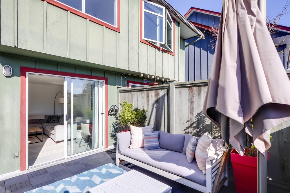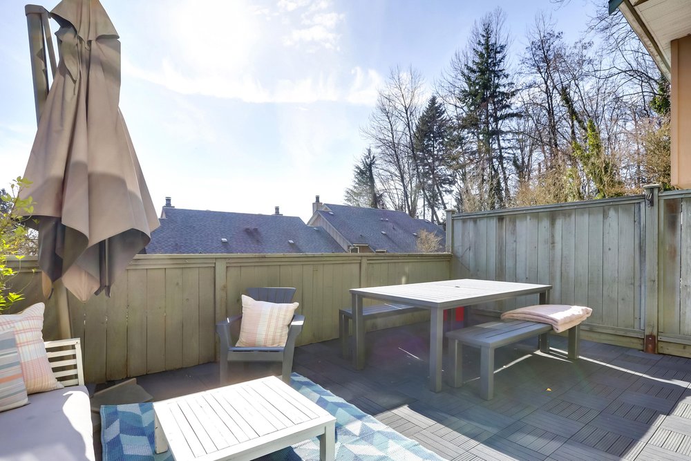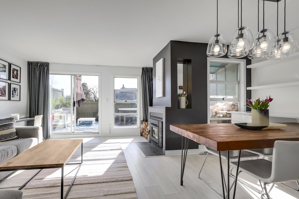 Welcome to Foxwood Hills- a rarely available, duplex-style 3-bedroom, 2-bath townhouse offering 1,234 sq. ft. of functional living in the heart of North Vancouver. This spacious home features a beautifully updated kitchen with heated floors, plus heated floors in the upstairs bathroom. The built-in dining area is thoughtfully designed with custom shelves, generous storage, and a wine fridge- perfect for entertaining. Enjoy new carpets, fresh paint, and a new washer and dryer. The cozy living room is anchored by a charming wood-burning fireplace, creating a warm and inviting atmosphere. Step outside to your south-facing 325 sq. ft. private patio- ideal for hosting friends or enjoying peaceful evenings outdoors. Enjoy the convenience of full-size in-suite laundry, one parking. Pet friendly.